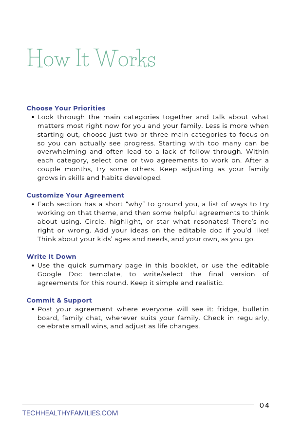 – A printable mini-booklet with conversation starters, “why it matters” explanations, and category-by-category options